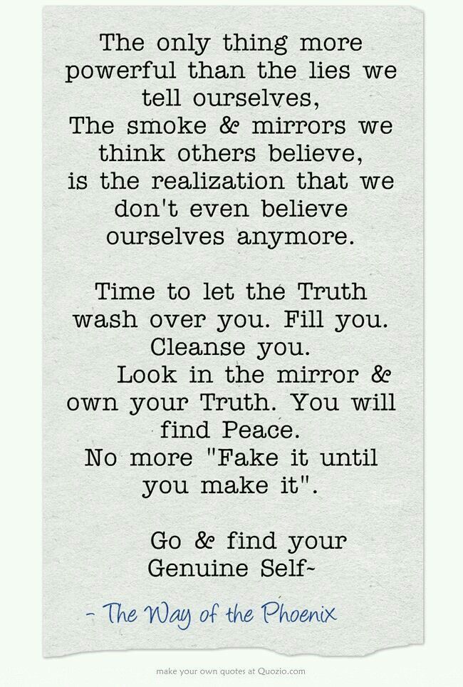 We all have a view of who we are, what we are, and what we are capable of in life. Many times, these are skewed due to our reliance on outside judgments (she’s pretty, she’s sweet, she’s kind, she’s ugly, she’s slow, she’s conceited, she’s too smart, she’s too much) that we accept as truths. We deny what we know is the truth and believe the lie. Often, it’s because of not being able to accept who we truly are, so we lie to ourselves to try to fit into what we think we should be. Sometimes, it is to assuage an insecurity we could be working on, to gain someone’s approval, or because we have a side of us that we feel is truly despicable and we need to pretend it’s not there. Until we can face ourselves in the mirror and love every part of ourselves, and acknowledge what we like and don’t like, what we are ready to and want to improve, what we truly want in this life and commit to what it takes to get that, we will never reach our true potential.